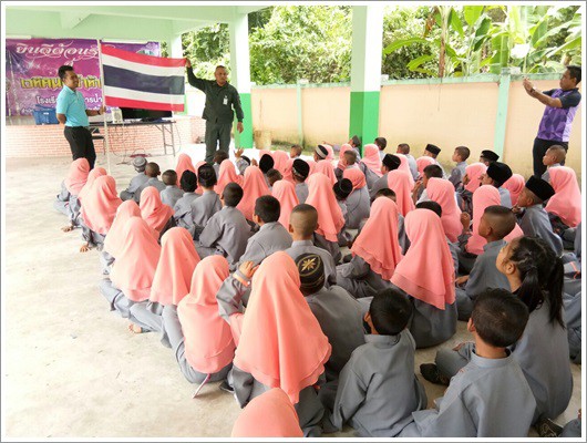 วันที่ ๙ สิงหาคม ๒๕๖๒ นายประทีป ยาวงศ์ ผู้อำนวยการโรงเรียนบ้านธารน้ำผึ้ง ได้ให้การสนับสนุนวิทยากร จากหน่วยกองกำลังตำรวจตระเวณชายแดน ที่ ๔๔ คือ ด.ต.วรัญชัย มีสวัสดิ์ เข้ามาอบรมให้ความรู้แก่นักเรียนในเรื่องเกี่ยวกับธงชาติไทย การทำความเคารพก่อนและหลังการชักธงขึ้นและลงจากยอดเสา พร้อมทั้งให้ความรู้เกี่ยวกับความเป็นมาของธงชาติไทยให้กับนักเรียนตั้งแต่ชั้นประถมศึกษาปีที่ ๑ -๖ ของโรงเรียนบ้านธารน้ำผึ้ง