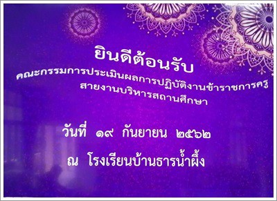 วันที่ ๑๙ กันยายน ๒๕๖๒ คณะกรรมการประเมินผลการปฏิบัติงานข้าราชการครู สายงานบริหารสถานศึกษา ประกอบด้วย นางวรรณี เสือสิงห์ ผู้อำนวยการโรงเรียนสามแยกบ้านเนียง(สิทธิพันธ์อนุกูล) นายนพรัตน์ นอบแก้ว ผู้อำนวยการโรงเรียนบ้านยะลา และนางวรรณฤดี สัตยาทิตย์ ผู้อำนวยการกลุ่มบริหารงานการเงินและสินทรัพย์ ซึ่งเข้ามาดำเนินการประเมินผลการปฎิบัติงานของ นายประทีป ยาวงศ์ ผู้อำนวยการโรงเรียนบ้านธารน้ำผึ้ง โดยมีการนำเสนอผลการปฏิบัติงานในรูปแบบ VTR และการถามตอบข้อซักถามจากหัวหน้าฝ่ายงานทั้ง ๔ ฝ่ายงานและผู้มีส่วนเกี่ยวข้อง ตลอดจนการเยี่ยมชมบรรยากาศการจัดการเรียนการสอนในแต่ละชั้นเรียน