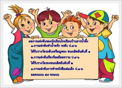ในส่วนของการแข่งขันที่โรงเรียนได้เป็นตัวแทนศูนย์เครือข่ายเรืองวิทย์ ประกอบไปด้วย การแข่งขันการทำน้ำพริกเครื่องเคียง ระดับป.๔-๖ ได้รับรางวัลชนะเลิศ และเป็นตัวแทนไปแข่งขันในระดับต่อไป การแข่งขันเรียงร้อยถ้อยความ (เรียงความ) ป.๔-๖ ได้รับรางวัลรองชนะเลิศอันดับที่ ๒ และการแข่งขันการทำหนังสือเล่มเล็ก ระดับป.๔-๖ ได้เข้ร่วมแข่งขันในครั้งนี้ ถึงจะไม่ได้รางวัลแต่นักเรียนก็พยายามอย่างสุดความสามารถ