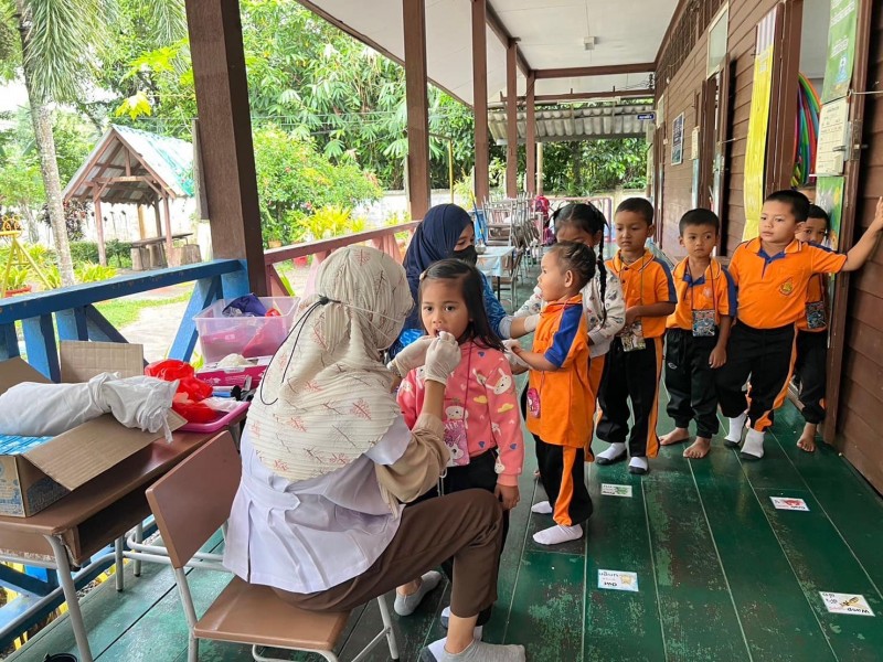 วันที่ 24 พฤศจิกายน 2566 โรงเรียนบ้านธารน้ำผึ้ง ภายใต้การบริหารงานโดยนายประทีป ยาวงศ์ ผู้อำนวยการโรงเรียนบ้านธารน้ำผึ้ง มอบหมายให้ครูผู้รับผิดชอบงานอนามัย ควบคุมนักเรียนชั้นอนุบาล 1 ถึง ชั้นประถมศึกษาปีที่ 6 รับการเคลือบฟูลออไรด์ฟัน จากโรงพยาบาลส่งเสริมสุขภาพตำบลนิบงบารู เพื่อรักษาสุขภาพฟันที่ดีให้กับนักเรียน |